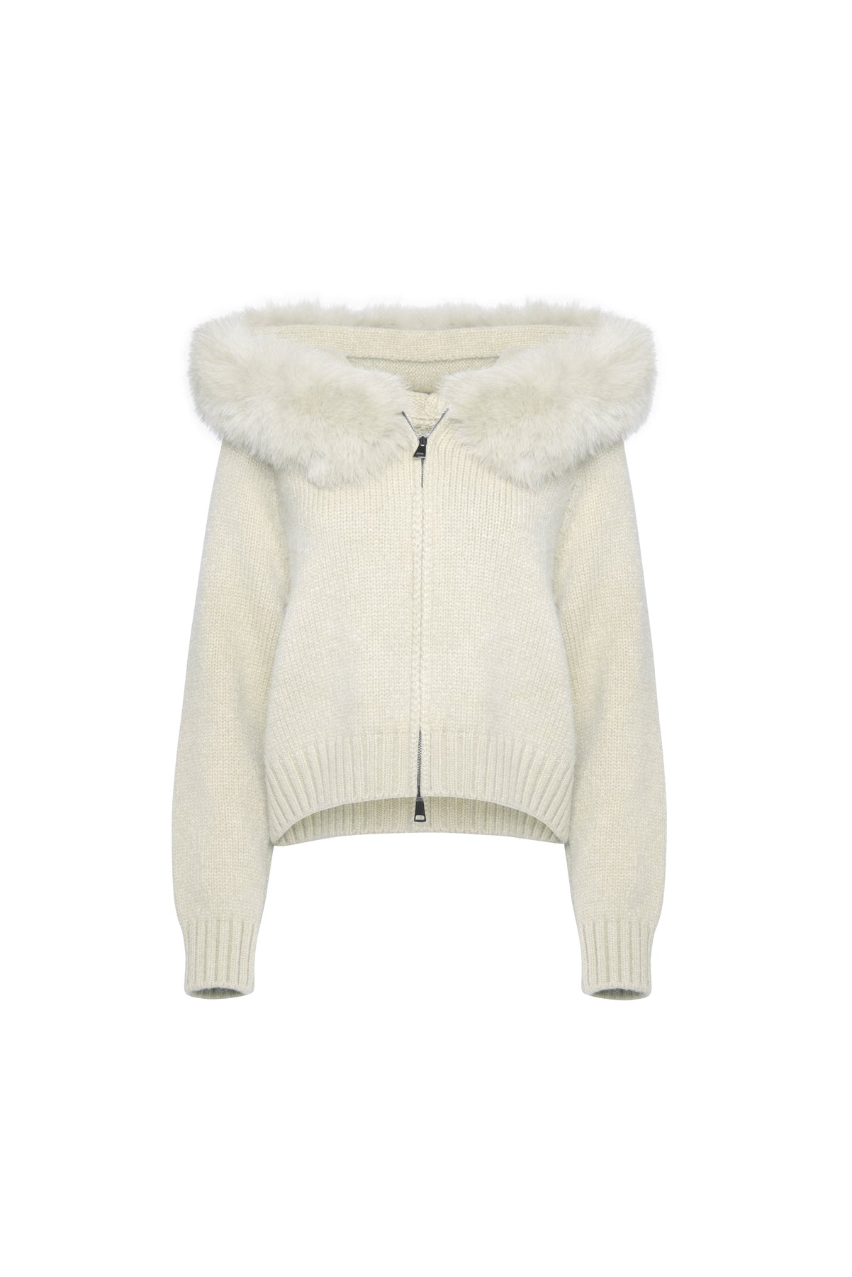This wool-blend zip-up cardigan, finished with a luxurious detachable fox fur hood, elevates the everyday. Whether it’s for travel, errands, or a night out, its versatile design lets you style it with or without the fur—effortless sophistication for every occasion.